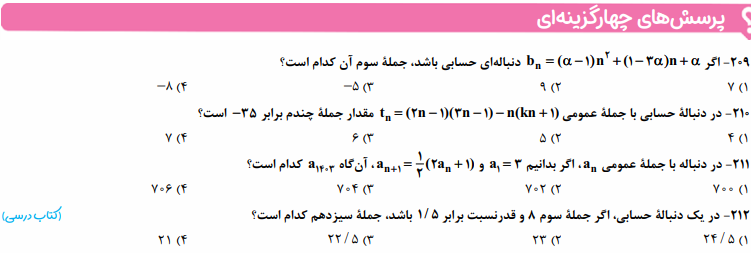پرسش های چهارگزینه ای به صورت طبقه بندی شده در آخر فصل